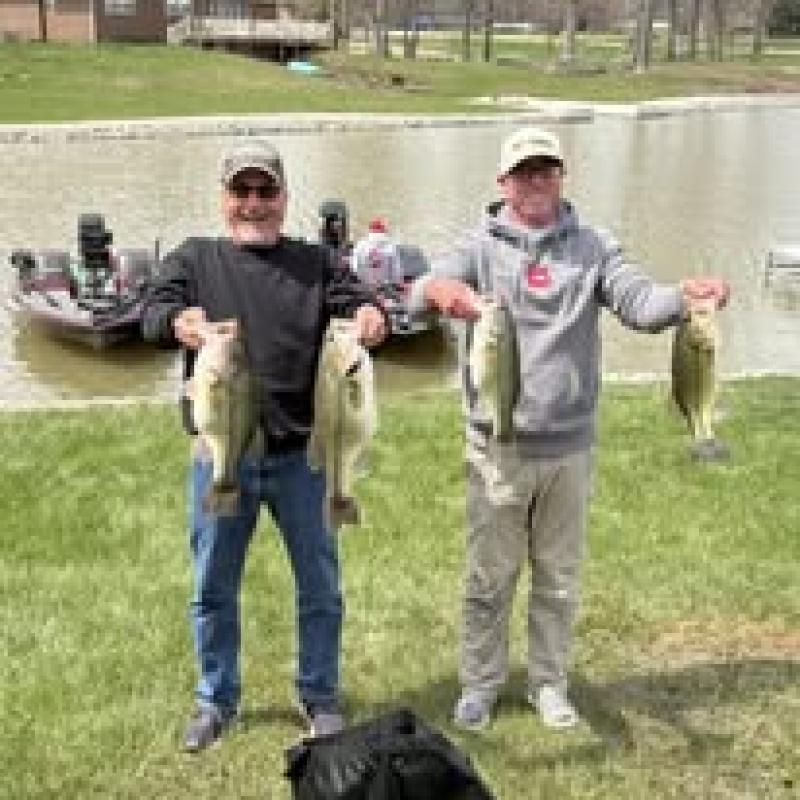 May 19, 2025 On Sunday May 19th Mother Nature finally gave the anglers who took part in the USA Bassin Brownie’s Marine Division tournament the kind of day people dream of when they think about a beautiful spring day on the water with friends! Sixteen teams took part in the second bass tournament of the season and, besides the beautiful weather, the largemouth bass at Lake Santee cooperated with the anglers as well. First place for the tournament was captured by Matt Perkins with five bass totaling 17.85 pounds. Matt, who normally competes with his dad, Scott, had to go it alone but didn’t let that stop him from taking top honors. Matt employed both fast-moving and slow bottom-contacting presentations in relatively shallow water to trick his catch that day. Second place was another father/son pair, Butch and Marco Mikesell, whose five-bass catch of 17.56 lbs. narrowly missed top honors, while third place was right in the mix with new members Dan Ems and Jerry Patton bringing in 17.35 pounds. Just think, only eight ounces separated first from third place. The Big Bass of the day went to the brother team of Brad and Kyle Laker with a 5.82 giant bass. Great job everyone!! Another big shout-out goes to Michael, Rob, Scott, Joe and all the other amazing folks at Brownies Marine just up the road in Fairland, IN for sponsoring the day’s beautiful plaques crafted by Tournament Wear of Ocklawaha, FL. Brownie’s Marine is a fourth generation marine dealer who has been in business since 1958 and specialize in all your boating needs whether it is new or pre-owned watercraft, certified factory service, or a full inventory of parts for the “do-it-yourselfer”. Our next tournament will be on Father’s Day, Sunday June 15th, from 6:00 AM until 12:00 PM. What better way to celebrate being a dad than spending the morning on the water before heading to that cook-out? If you are unsure about the competition aspect of tournament angling, come down and see what the excitement is all about! Until next time, please remember to follow our anglers’ lead and PRACTICE CATCH AND RELEASE on all of Lake Santee’s bass and remember to take a child fishing… kids will remember a special day fishing a lot longer than a day spent sitting around scrolling on a device…. God Bless, Chip & Lisa Ayers